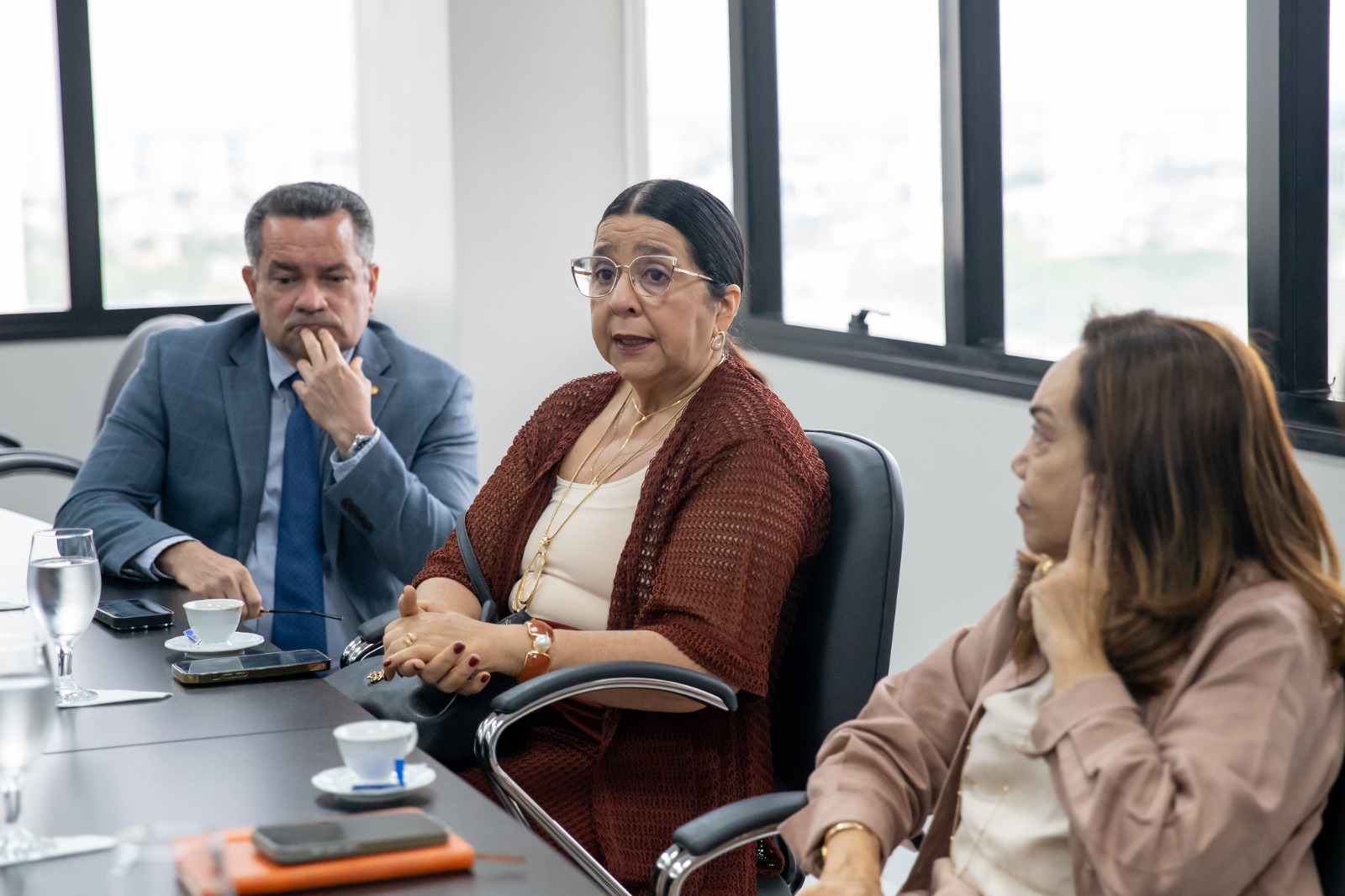 A reunião foi conduzida pela desembargadora Vânia Maria do Perpétuo Socorro Marques Marinho e pelo juiz-corregedor auxiliar Yuri Caminha Jorge, com o objetivo de promover a aproximação institucional com o Ministério Público.