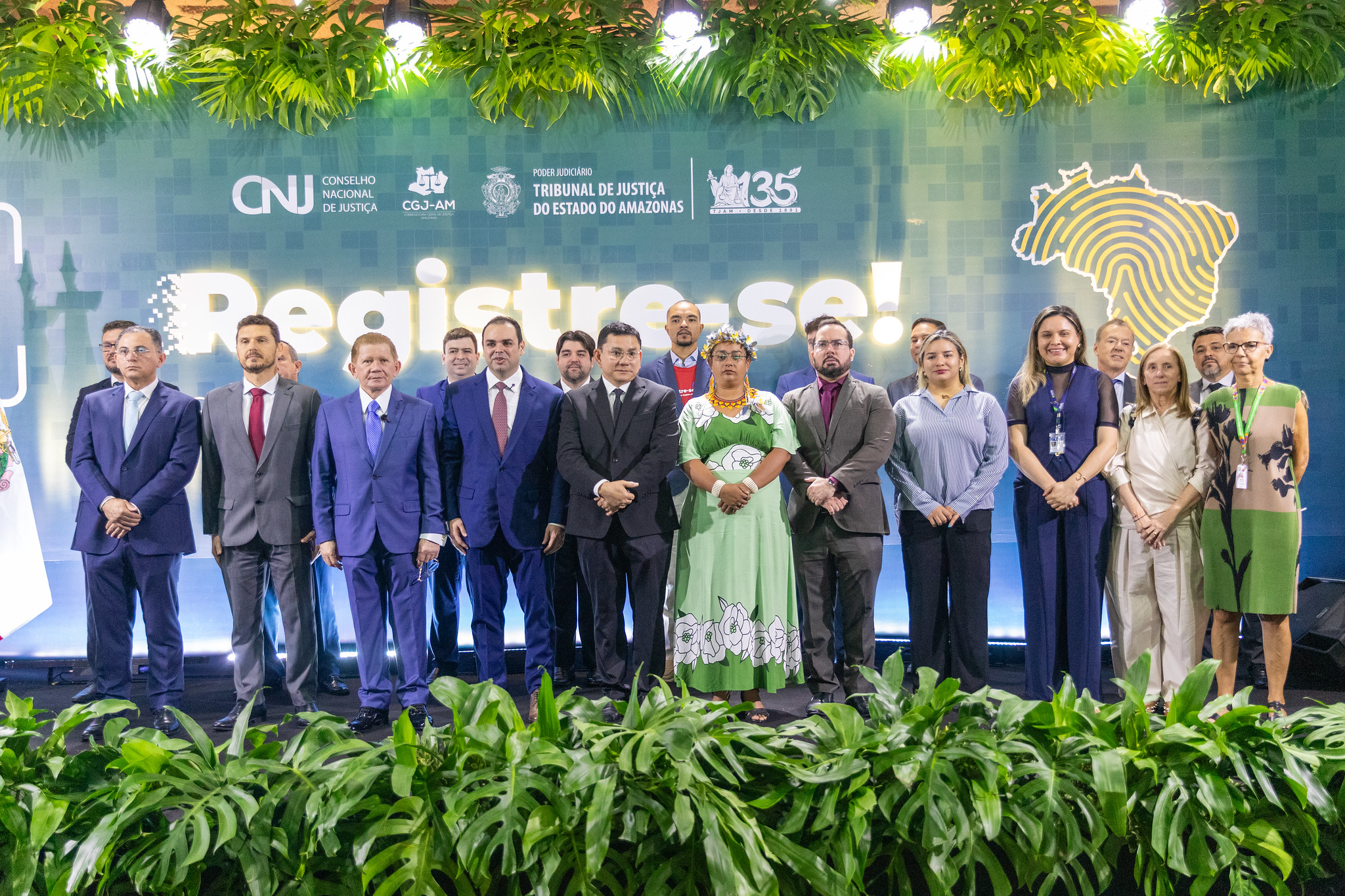 O “Registre-se!”, no Amazonas, foi aberto solenemente pelo corregedor-geral de Justiça do Amazonas, desembargador José Hamilton Saraiva dos Santos, e a solenidade, realizada na manhã desta segunda-feira (13/4), contou com a presença de diversas autoridades, dentre as quais o presidente do Tribunal de Justiça do Amazonas; o governador do Estado do Amazonas, interino, deputado estadual Roberto Cidade; o coordenador de Gestão de Programas e Projetos do Conselho Nacional de Justiça, Caio Henrique Faustino da Silva; o juiz-corregedor auxiliar e coordenador regional do “Registre-se!”, magistrado Roberto Santos Taketomi; a coordenadora-geral de Promoção de Registro de Nascimento do Ministério dos Direitos Humanos e da Cidadania, Taula Vieira Brasileiro; o presidente da Ordem dos Advogados do Brasil Seccional Amazonas, Jean Cleuter Simões Mendonça; o defensor público-geral do Estado do Amazonas, Rafael Vinheiro Monteiro Barbosa; dentre outras autoridades.