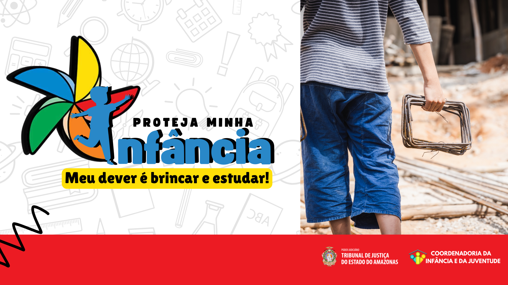 A Coordenadoria da Infância e da Juventude do Tribunal de Justiça do estado do Amazonas, em apoio ao Dia Mundial do Combate ao Trabalho Infantil, apresenta informações para e sensibilização de famílias e da sociedade em geral para a proteção de crianças e adolescentes vítimas do trabalho precoce. Nossa Campanha: "Proteja minha infância: Meu dever é brincar e estudar", coloca em evidência a necessidade da sociedade proteger os direitos básicos do público infantojuvenil.
