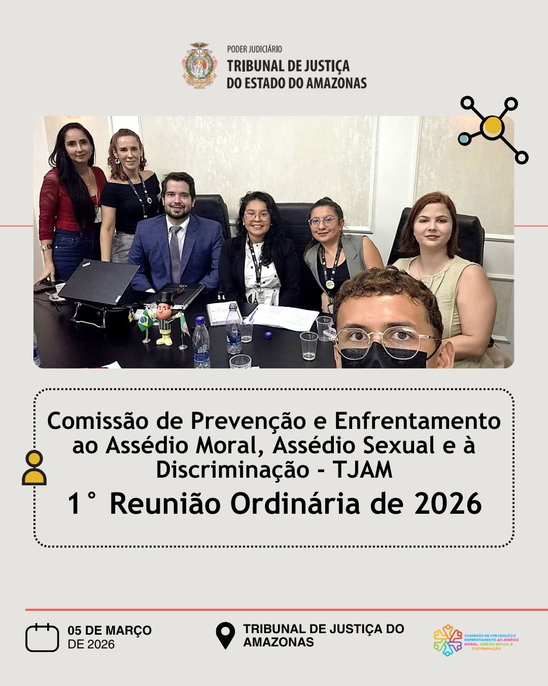 A Comissão de Prevenção e Enfrentamento ao Assédio Moral, Assédio Sexual e à Discriminação do TJAM participou, na manhã de hoje dia 24/02/2026, do Curso de Formação Inicial de Estagiários, levando aos novos integrantes do Tribunal orientações sobre prevenção ao assédio, canais institucionais e a importância de um ambiente de trabalho seguro, ético e respeitoso.