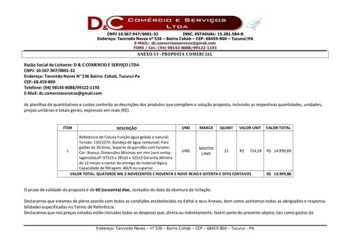 OBJETO:  Aquisição de Materiais quais sejam bebedouros de coluna, ventiladores de parede, filtro externo para bebedouro de pressão e aquisição de filtro interno para purificadores de água.