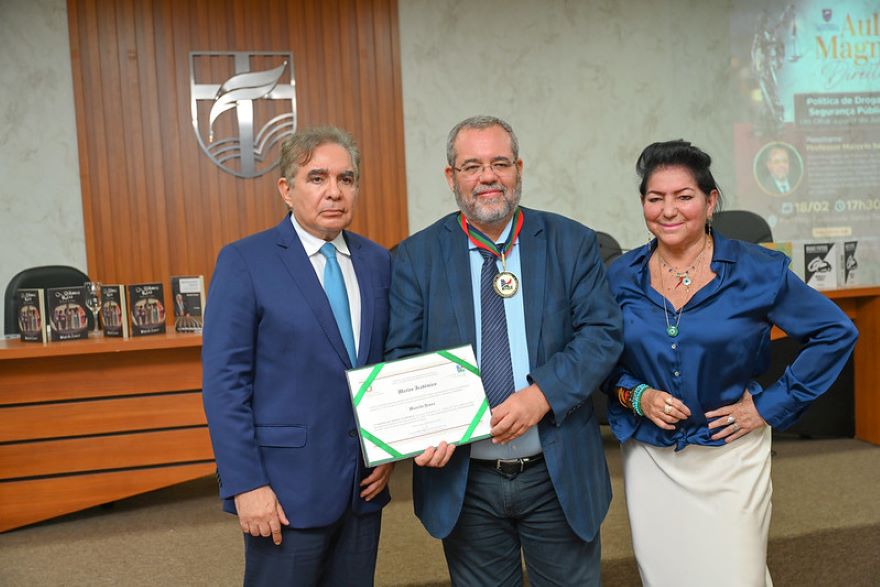 A cerimônia de outorga da comenda aconteceu no auditório da Faculdade Santa Teresa, no Vieiralves, onde o homenageado ministrou a Aula Magna daquela instituição, proferindo a palestra “Política de drogas e segurança pública, um olhar a partir do judiciário”.
