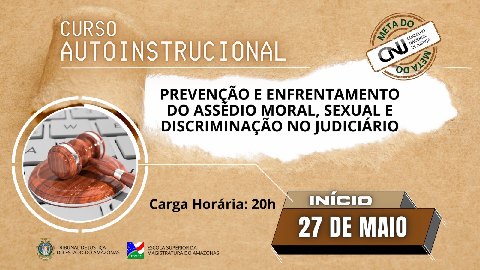 A Escola Superior da Magistratura do Amazonas-Esmam, lançou nesta terça-feira, 27/05, o curso autoinstrucional “Prevenção e enfrentamento do assédio moral, sexual e discriminação”, com o objetivo de ampliar o conhecimento sobre princípios, diretrizes e ações para a prevenção e enfrentamento de condutas que se classifiquem como assédio moral, sexual e discriminação, propiciando compreensões e reflexões sobre a necessidade de ações para prevenção e enfrentamento no âmbito do Poder Judiciário.
