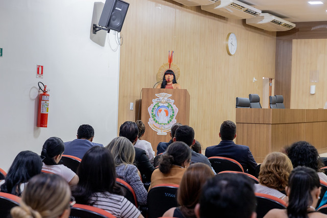 Durante o evento, a deputada federal por Minas Gerais, Célia Xakriabá, doutora em Antropologia e mestre em Desenvolvimento Sustentável pela Universidade Federal de Minas Gerais (UFMG), ministrou a palestra com o tema “Os desafios dos direitos dos povos indígenas no Brasil”. A deputada escreveu o prefácio de uma das obras lançadas – “Justiça entre mundos: os desafios dos direitos dos povos indígenas no Brasil”, e a sua apresentação foi feita pela influenciadora digital e ativista da causa indígena Isabelle Adriana Nogueira Dias, autora do posfácio do mesmo livro.