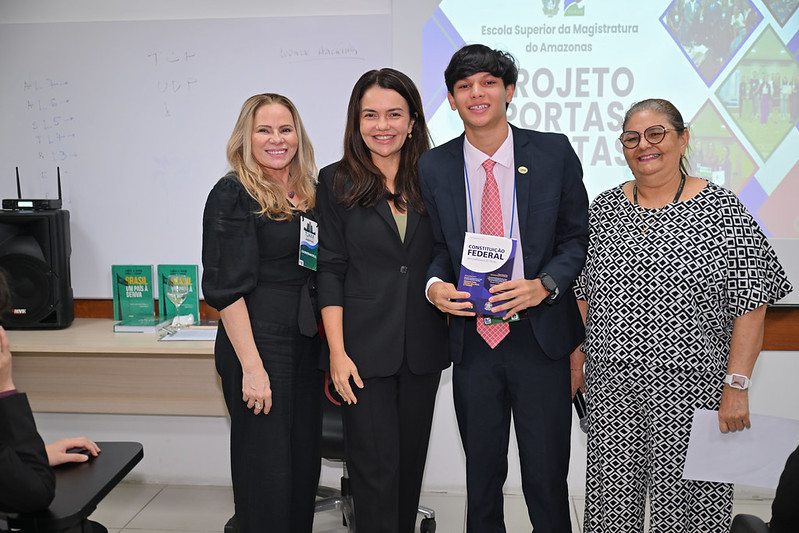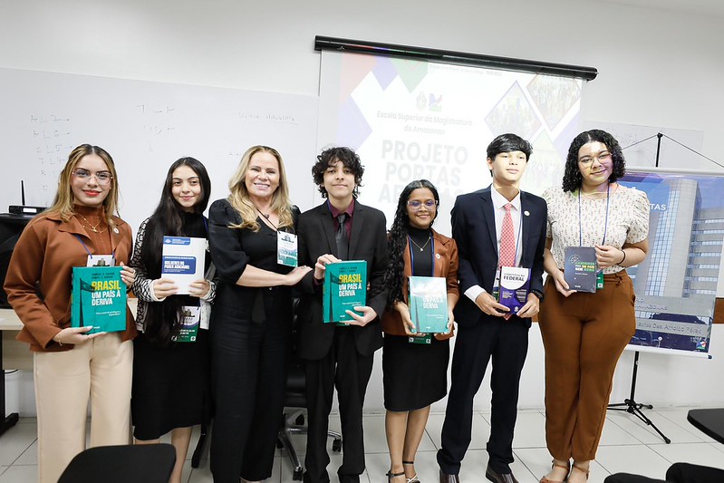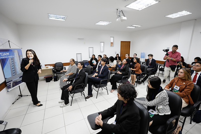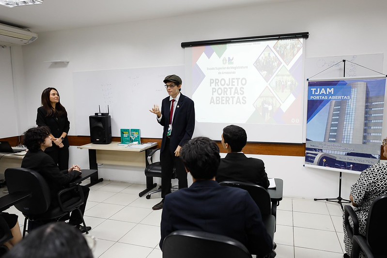 A Escola Superior da Magistratura do Amazonas (Esmam) recebeu, na manhã de quarta-feira, 25/11, os participantes do Programa Parlamento Jovem 2025 da Assembleia Legislativa do Estado do Amazonas (Aleam), em uma edição especial do Projeto “Portas Abertas – Conhecendo o Poder Judiciário Amazonense”.