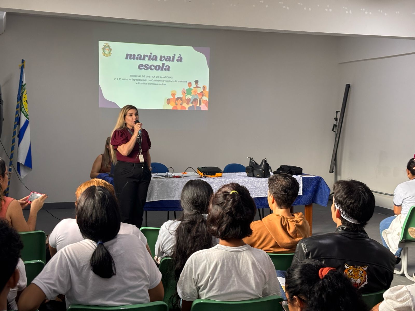 No dia 10/03, equipe formada pela assistente social dos 1.º e 4.º Juizados de Violência Doméstica, Celi Cristina Nunes Cavalcante, por estagiárias e pela assistente judiciária da Ouvidoria da Mulher/TJAM, Luciane Oliveira da Cruz, levou o projeto “Maria vai à Escola” para, aproximadamente, 140 alunos da Escola Estadual Senador Manuel Severiano Nunes, no bairro Alvorada 2, zona Centro-Oeste de Manaus.