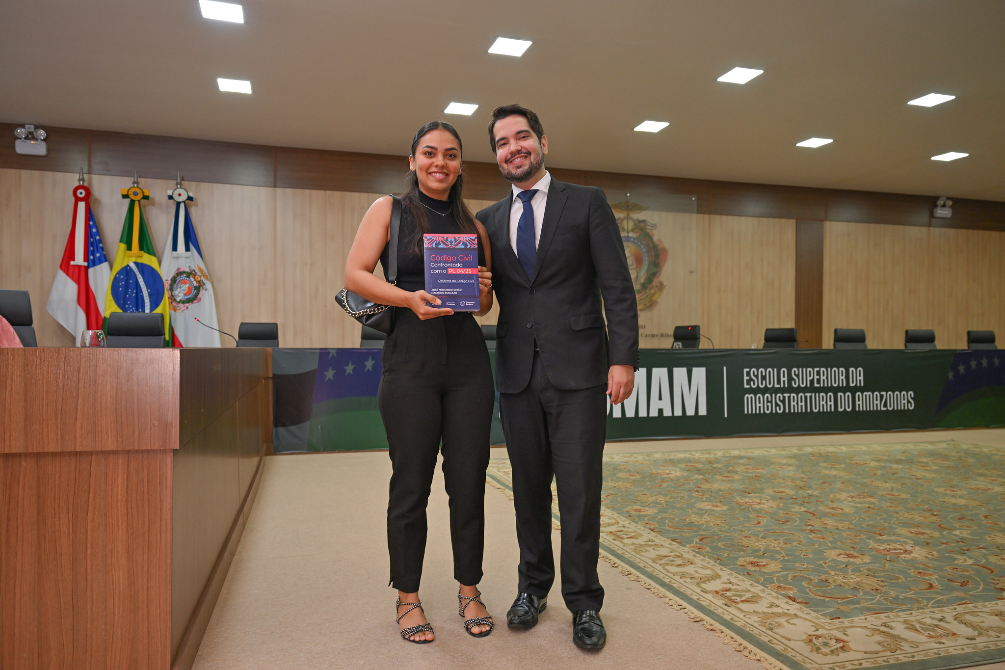 “A Esmam se sente realmente honrada de ter hoje aqui neste evento sobre Direito Civil, alguns dos mais importantes civilistas do Brasil e do Amazonas. Nós estamos reunindo aqui a casta do Direito Civil, tanto do Brasil quanto do Amazonas. Flávio Tartuce, Rodrigo Bastos, Rafael Cândido, a professora Giselda Hironaka, são pessoas que pensam o direito civil. E a Escola da Magistratura é para isso, é para juntar o pensamento crítico com a prática. Esse é o nosso objetivo. Estamos diante de um novo mundo. Portanto, temos que ter um novo Código Civil, que responda às novas demandas. Vamos discutir o que vem por aí”, afirmou Pascarelli.
