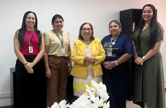 #PraTodosVerem: Imagem que ilustra a matéria traz a foto da desembargadora Joana dos Santos Meirelles ladeada por demais integrantes da COIJ e do Sesi