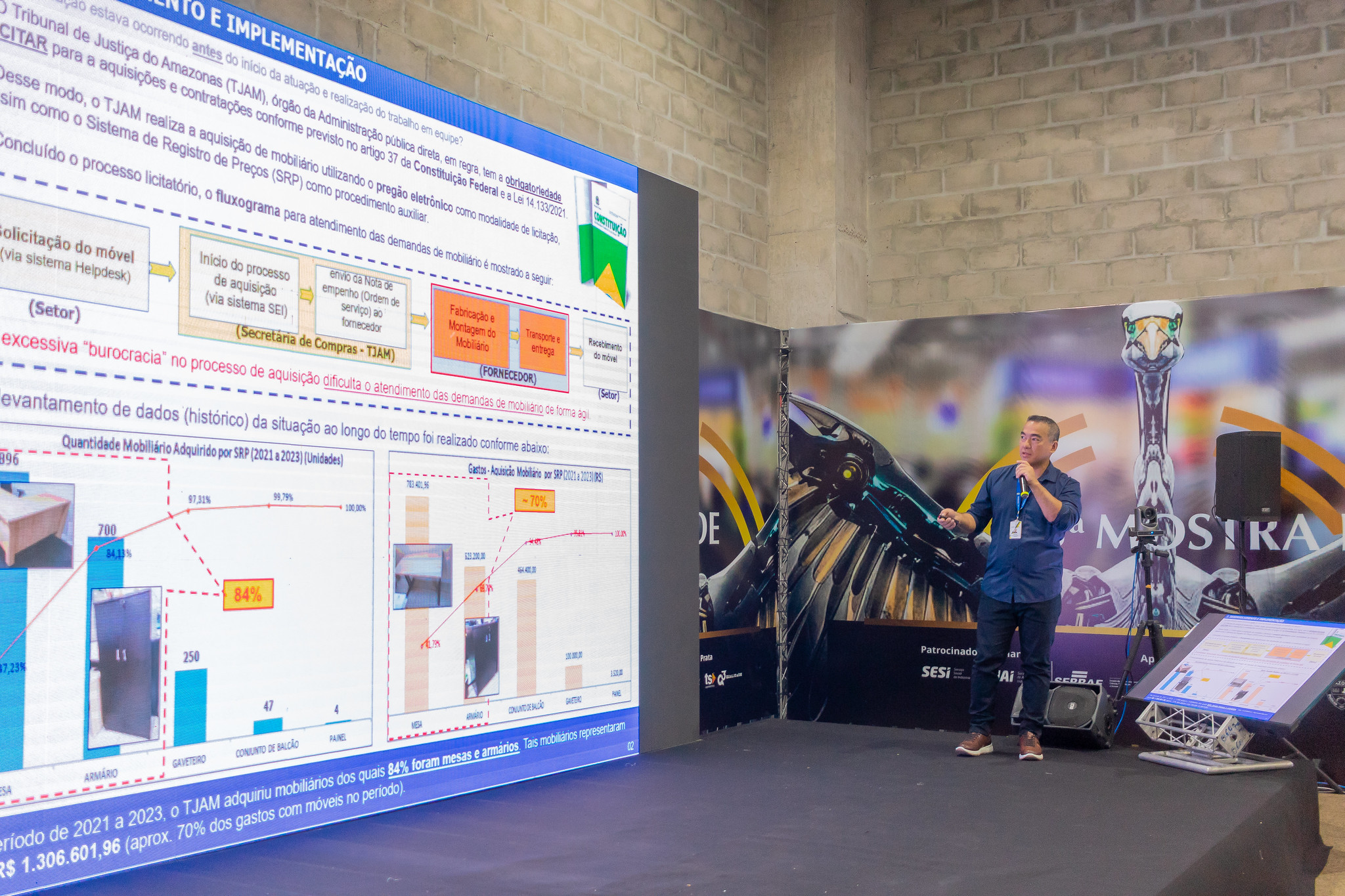 A apresentação durante o evento foi feita pelo assistente judiciário da Secop, servidor Djalma Takeshi Ishizawa, representando, também, o Poder Judiciário o secretário de Compras, Contratos e Operações, Chrystiano Lima e Silva; o chefe da Seção de Movelaria, Iano Sá; e a coordenadora de Licitações, Joyce Makarem.