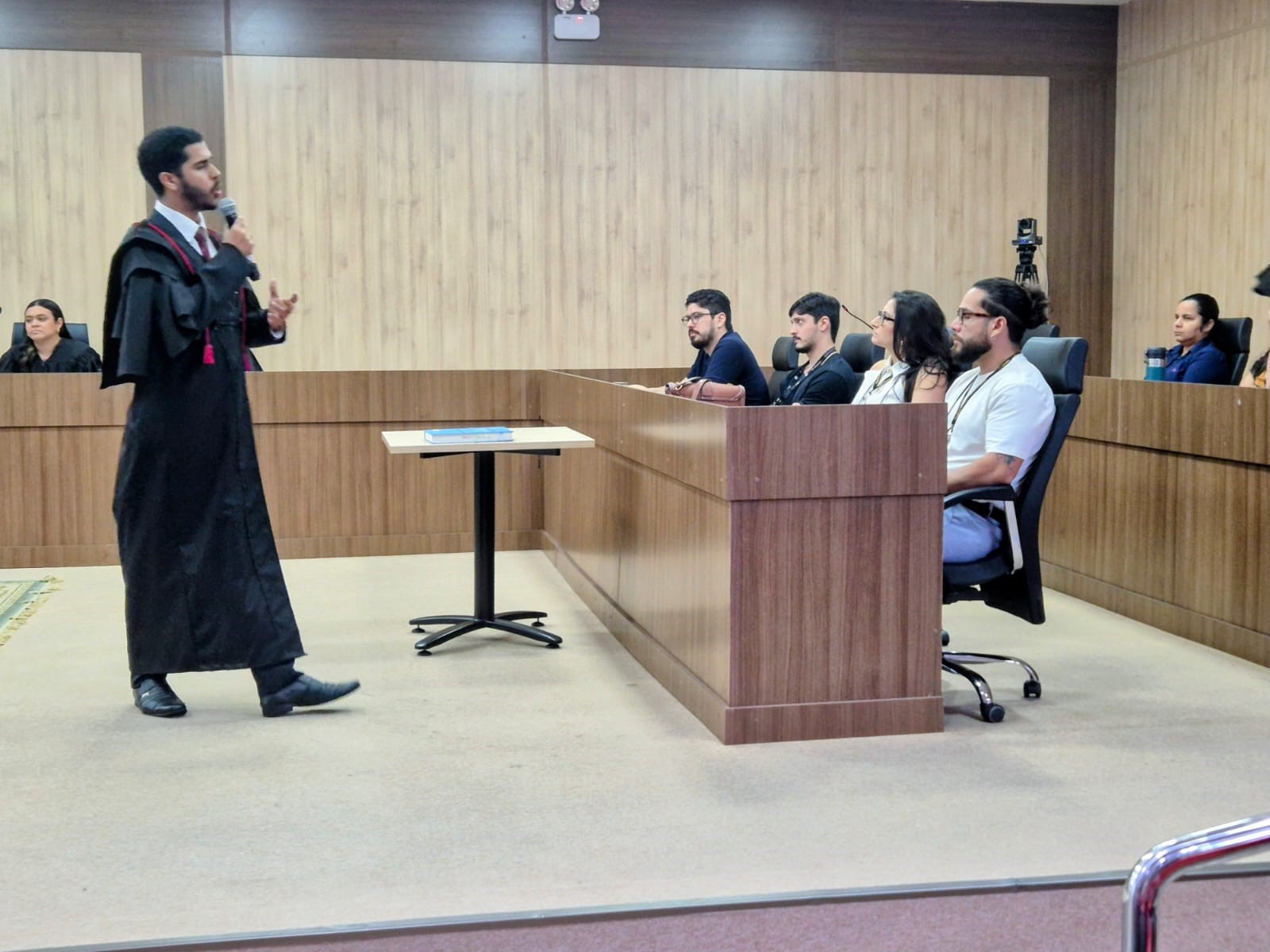 “A respeito do júri de hoje, nós encontramos uma equipe muito técnica e muito potente na sua sustentação, mas a UFAM vem cada vez mais evoluindo, principalmente pelos estudos na oficina do Júri Simulado, Nasser Abrahim Nasser Netto, que forma novos tribunos com renome e vão se aprimorando, buscando cada vez mais técnicas, e acima de tudo, convencer, emocionar, porque júri é vida, Direito é vida. Então, o júri de hoje demonstra que essa é uma realidade, não é apenas um simulado. Estamos na preparação, no caminho correto para galgar o caminho que o Direito nos permite. Estamos muito felizes hoje com esse júri e com esse embate que foi fenomenal”, disse Aranha.
