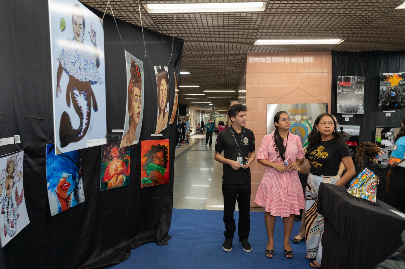 O hall do Fórum Ministro Henoch Reis se transformou em uma galeria de arte para a valorização da arte preta amazônida e ao enfrentamento do racismo estrutural. Até a próxima sexta-feira (14/11) a exposição “Amazônia Preta em Movimento”, do Coletivo Arte Ocupa, foi concebida por dez artistas locais, reunindo pinturas, desenhos, fotografias e esculturas, em uma iniciativa da Comissão de Prevenção e Enfrentamento ao Assédio Moral, Assédio Sexual e à Discriminação, em parceria com a Comissão de Incentivo à Participação Feminina, a Escola Superior da Magistratura do Amazonas e a Escola Judicial (Ejud) do Tribunal de Justiça do Amazonas (TJAM), como parte das ações do Poder Judiciário Estadual alusivas ao "Mês da Consciência Negra".