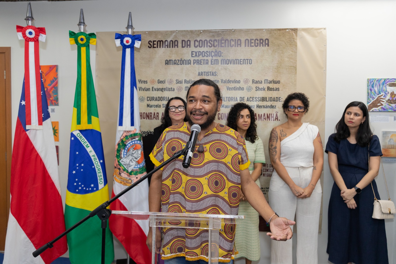 “Sou o curador, mas o protagonismo é dessas dez mulheres. Agradeço muito ao Tribunal de Justiça do Amazonas. Ano passado tivemos uma parceria muito com o projeto ‘Pretoberâncias’, cuja palavra foi criada aqui junto com vocês. Uma obra de arte pode causar letramento racial, pode ajudar a contar histórias e nos atravessar de muitas formas. Este é um mês para pensarmos quais as pessoas pretoberantes que admiramos. É um mês de falarmos e nos expressarmos, e de pensar que o racismo será combatido com muita luta e amor”, comentou o curador.