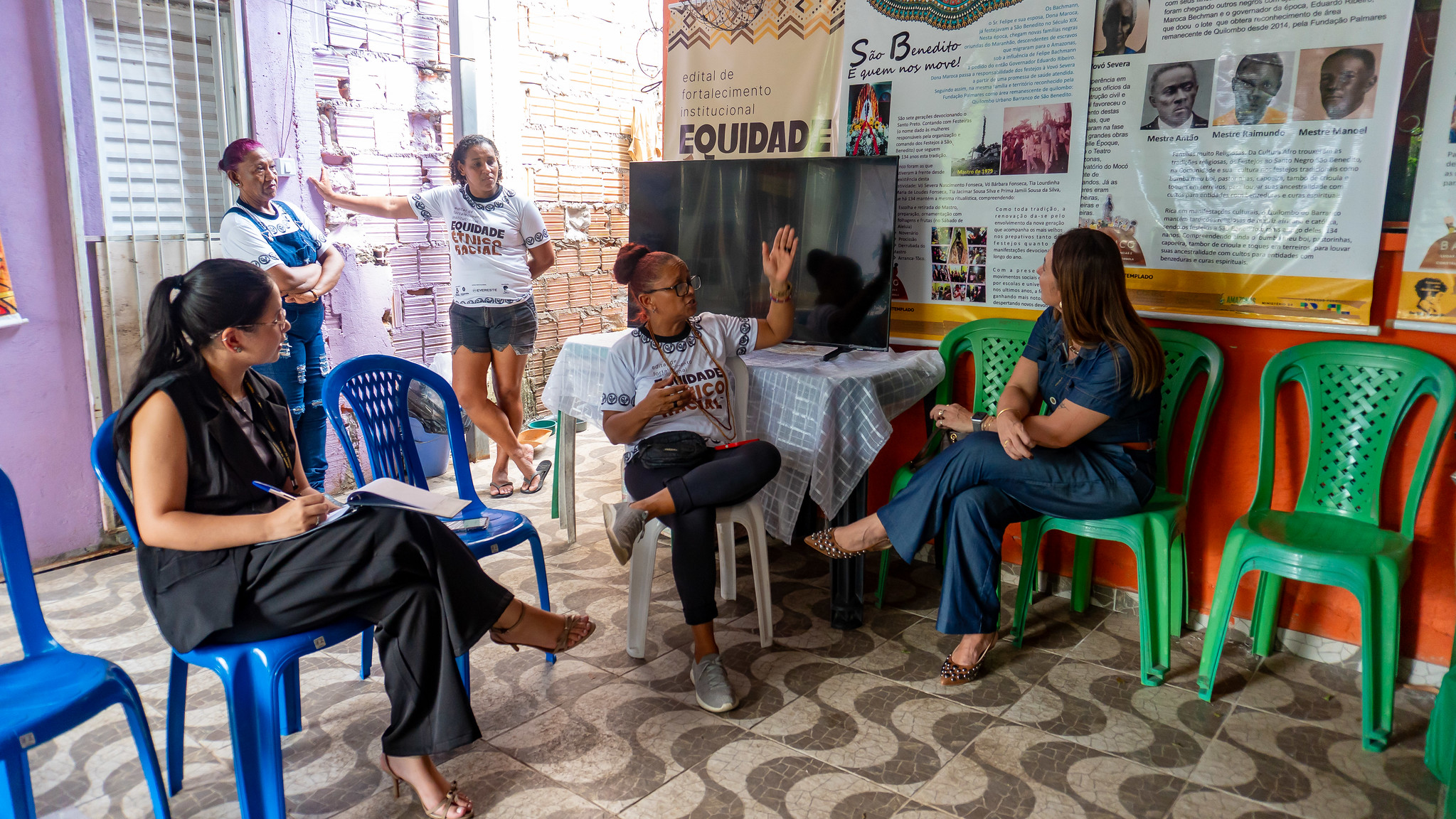 A equipe do TJAM foi recebida pela presidente da Associação das Crioulas do Quilombo de São Benedito, Keilah Maria da Silva Fonseca, uma das fundadoras, Fabiane Rodrigues Fonseca; as membros Wanessa Fonseca e Kely da Silva Fonseca, além das pesquisadoras e apoiadoras das atividades, professora Liberacy de Souza Oliveira e doutoranda Yama Talita Passos Monteiro.
