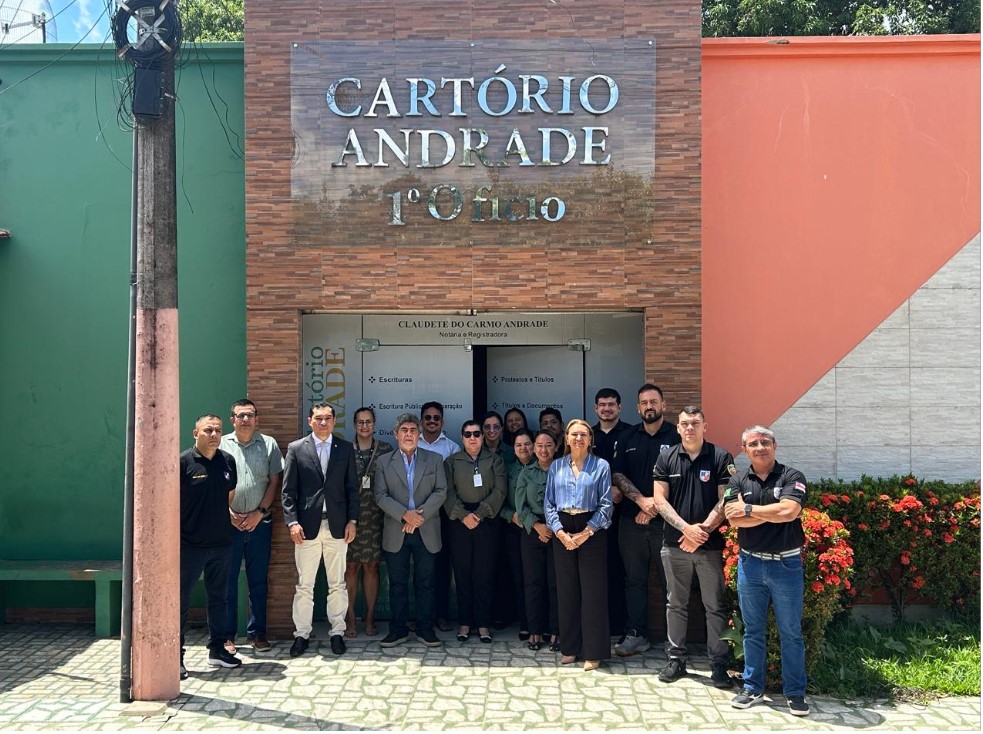#PraTodosVerem: Na imagem principal que ilustra a matéria, o registro fotográfico da equipe de correição, juntamente com representantes da comarca de Maués, na frente do Fórum de Justiça da localidade. Na imagem, nove pessoas aparecem, de pé, lado a lado, na frente da edificação. Na fachada do Fórum consta, em letras prateadas a descrição: “Poder Judiciário; Fórum Desembargador Oyama César Ituassu Silva”. O prédio tem paredes na cor, predominantemente branca com detalhes nas cores preta e laranja.
