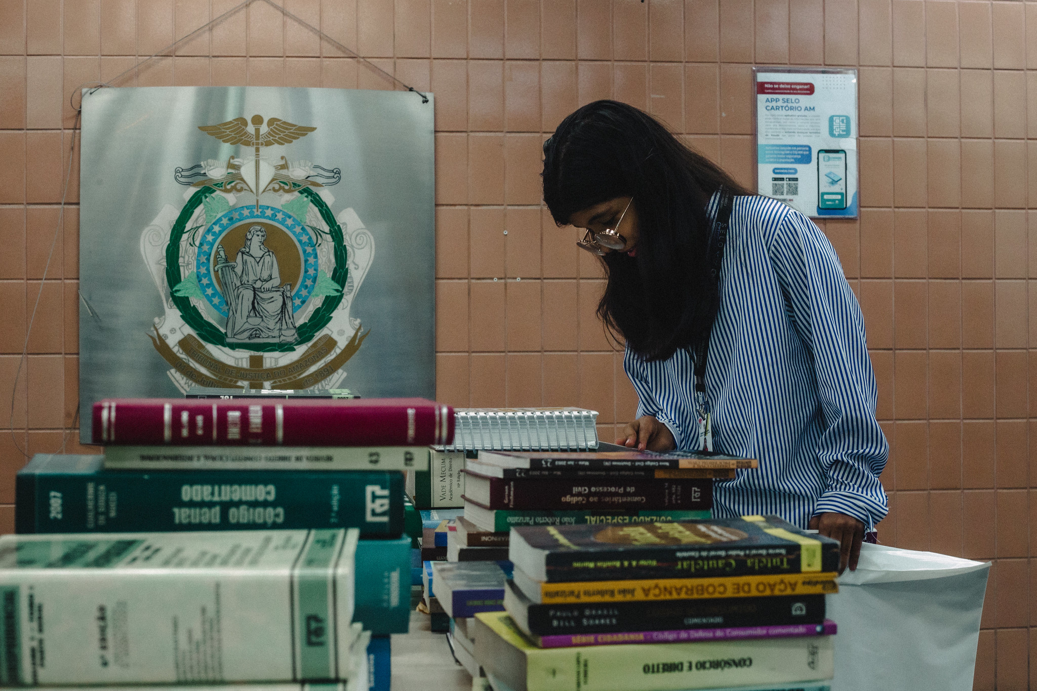 A servidora Anne Beatriz dos Santos Araújo, 22, que atua no setor do Cejusc Famílias, aproveitou a feira para "adotar" dois livros: um sobre Processo Legal e outro sobre a Consolidação das Leis do Trabalho (CLT). Bolsista do 7.º período do curso de Direito, ela elogiou a iniciativa e disse que a ação ajuda pessoas, como ela, que buscam economizar nos estudos.
