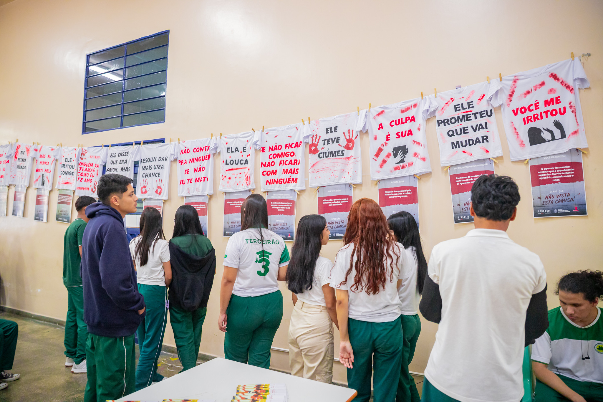 Os estudantes tiveram ainda a oportunidade de participar de um quiz sobre relacionamentos abusivos ou saudáveis; e prestigiaram a exposição “Não Vista Essa Camisa”, que traz dizeres alertando contra a violência doméstica e familiar.