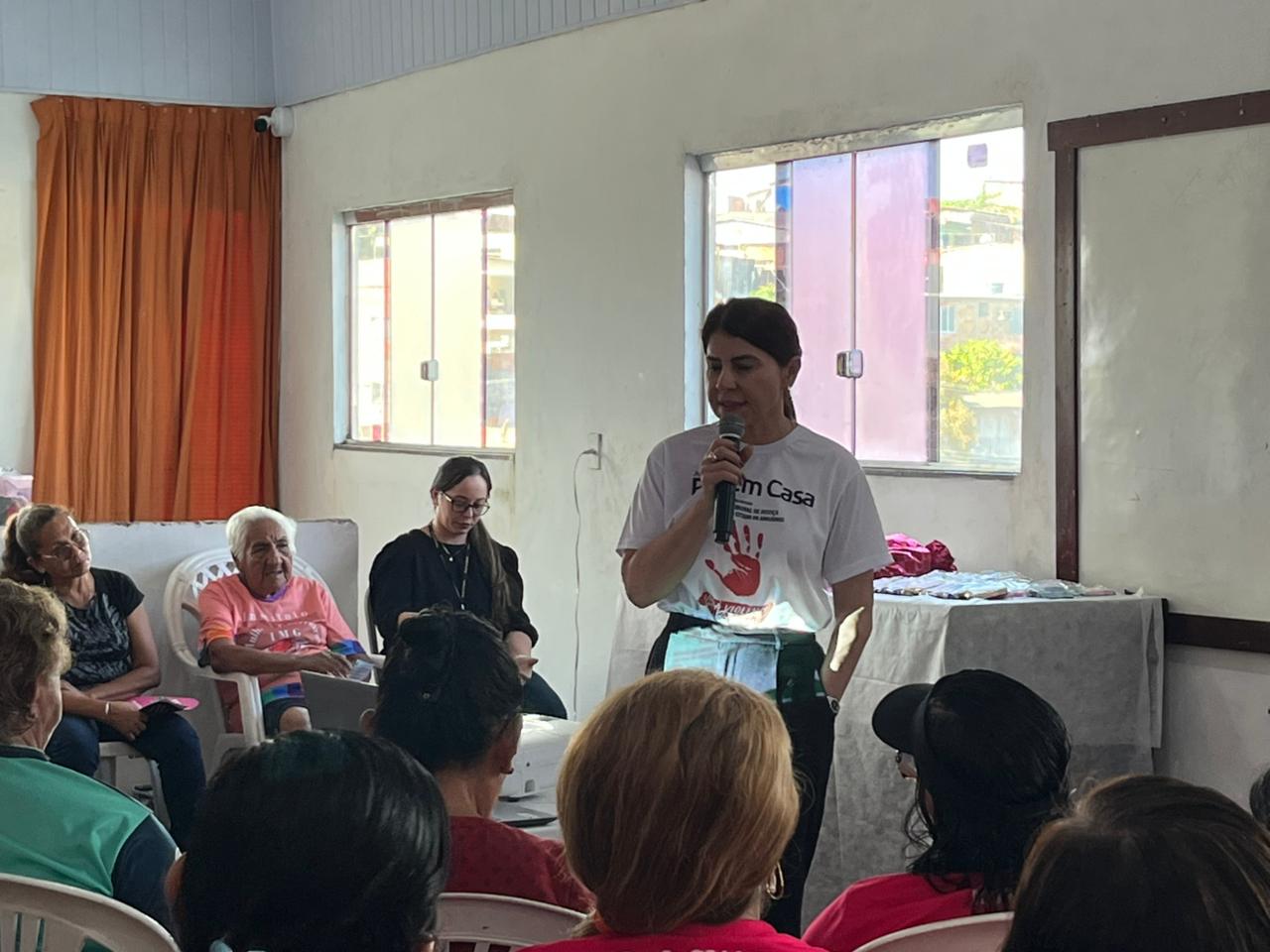 Na terça-feira (10/3), a atividade aconteceu no “Instituto Mulheres Guerreiras”, que funciona no bairro Japiim, na zona Sul da capital, para um público formado por 40 mulheres da terceira idade que assistiram à palestra “Violência doméstica contra as mulheres: prevenção, direitos e denúncia”.