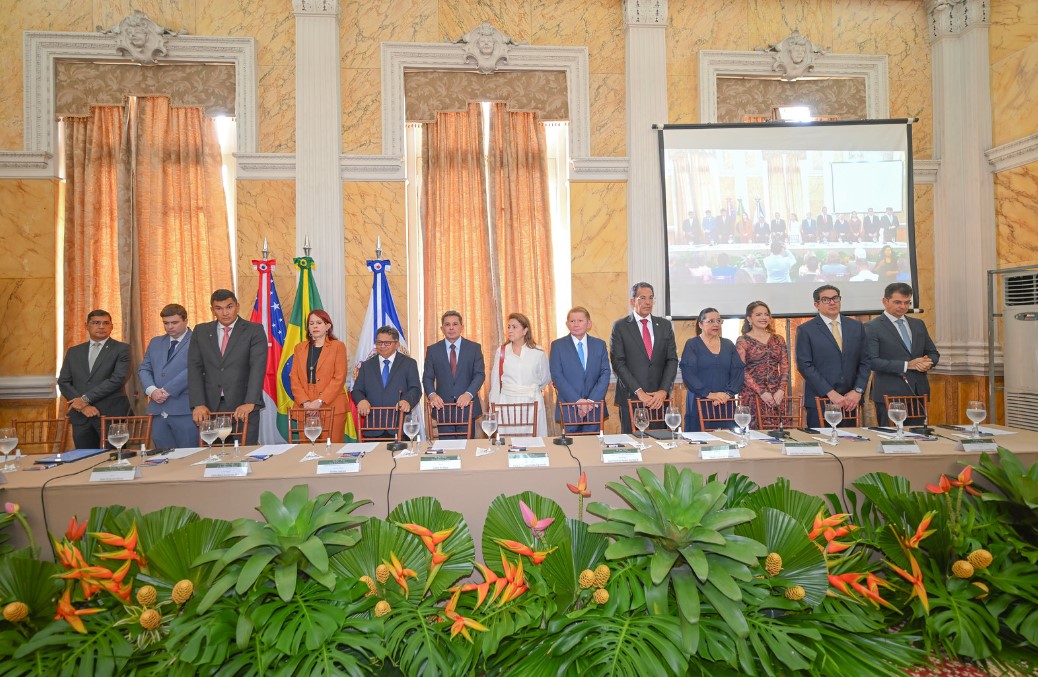 Além do corregedor nacional de Justiça, Ministro Mauro Campbell Marques e do corregedor-geral de Justiça do Amazonas, desembargador José Hamilton Saraiva dos Santos, a mesa de honra da cerimônia de encerramento da edição 2026 da “Semana Solo Seguro Amazônia”, realizada em Manaus, teve a participação das seguintes autoridades: o vice-governador do Estado do Amazonas, Tadeu de Souza; a procuradora-geral de Justiça do Amazonas, Leda Mara Nascimento Albuquerque; o Comandante Militar da Amazônia, General de Exército Luiz Gonzaga Viana Filho; a presidente do Tribunal Regional Eleitoral do Amazonas, desembargadora Carla Maria Santos dos Reis; a secretária de Estado das Cidades e Territórios, Renata Queiroz Pinto; o secretário municipal de Habitação e Assuntos Fundiários, Jesus Alves Dos Santos (neste ato, representando a Prefeitura Municipal de Manaus); o Juiz Corregedor Geral da Corregedoria Nacional de Justiça, Lizandro Garcia Gomes Filho; e o juiz-corregedor auxiliar e subcoordenador do Núcleo de Governança Fundiária e Sustentabilidade da Corregedoria-Geral de Justiça do Amazonas, Igor de Carvalho Leal Campagnolli.