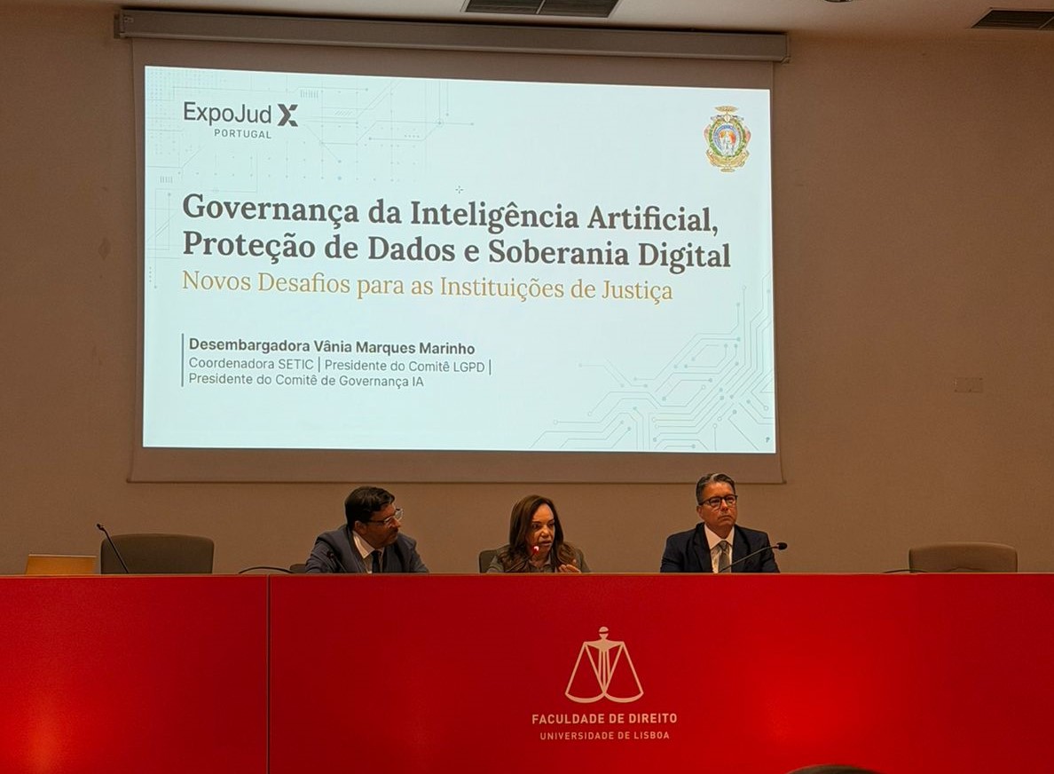 A presidente da Comissão de Gestão de Tecnologia da Informação e Comunicação do Tribunal de Justiça do Amazonas (CGTIC), desembargadora Vânia Marques Marinho, foi uma das palestrantes do Expojud Portugal 2026. A magistrada tratou sobre a “Governança da inteligência artificial, proteção de dados e soberania digital: novos desafios para as instituições de Justiça”, e apresentou o tema junto com o presidente do Conselho Consultivo da Anatel Brasil, Fabrício da Mota Alves, na terça-feira (24/3).
