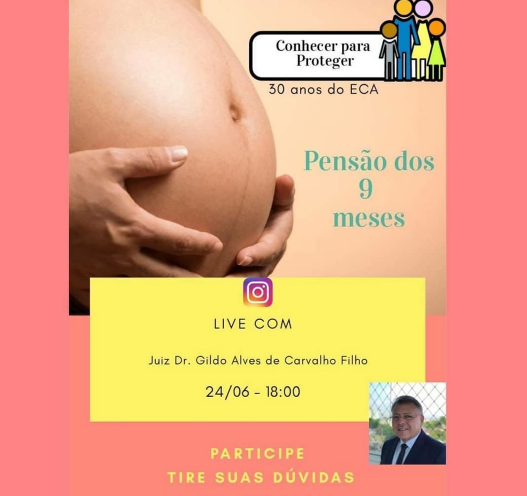 A programação, que poderá ser acompanhada pelo Instagram, começa nesta quarta-feira com a participação do juiz Gildo Alves, que falará sobre “Pensão dos nove meses – Alimentos Gravídicos”.