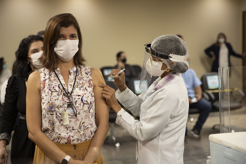 A campanha iniciou na última segunda-feira e já imunizou 483 pessoas, entre magistrados (as), servidores (as),aposentados (as), estagiários (as) e colaboradores (as) do Tribunal.