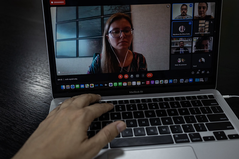 Em seguida, os estagiários e estagiárias puderam sanar dúvidas sobre o projeto e a secretária Wiulla Garcia Alves falou sobre os contratos, as condições de trabalho e sobre a organização dos estagiários durante suas atividades.
