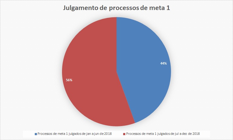 Conforme o balanço de 2018, o percentual superior a 100% foi alcançado nas Metas 1, 2, 4 e 6, que estão entre as mais importantes no acompanhamento do Conselho Nacional de Justiça.