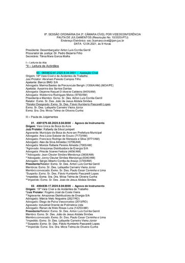 pdf 12a. Sessão Ordinária da Terceira Câmara Cível - VIA VIDEOCONFERÊNCIA - Data 10.05.2021 Hora: 9 Horas Popular